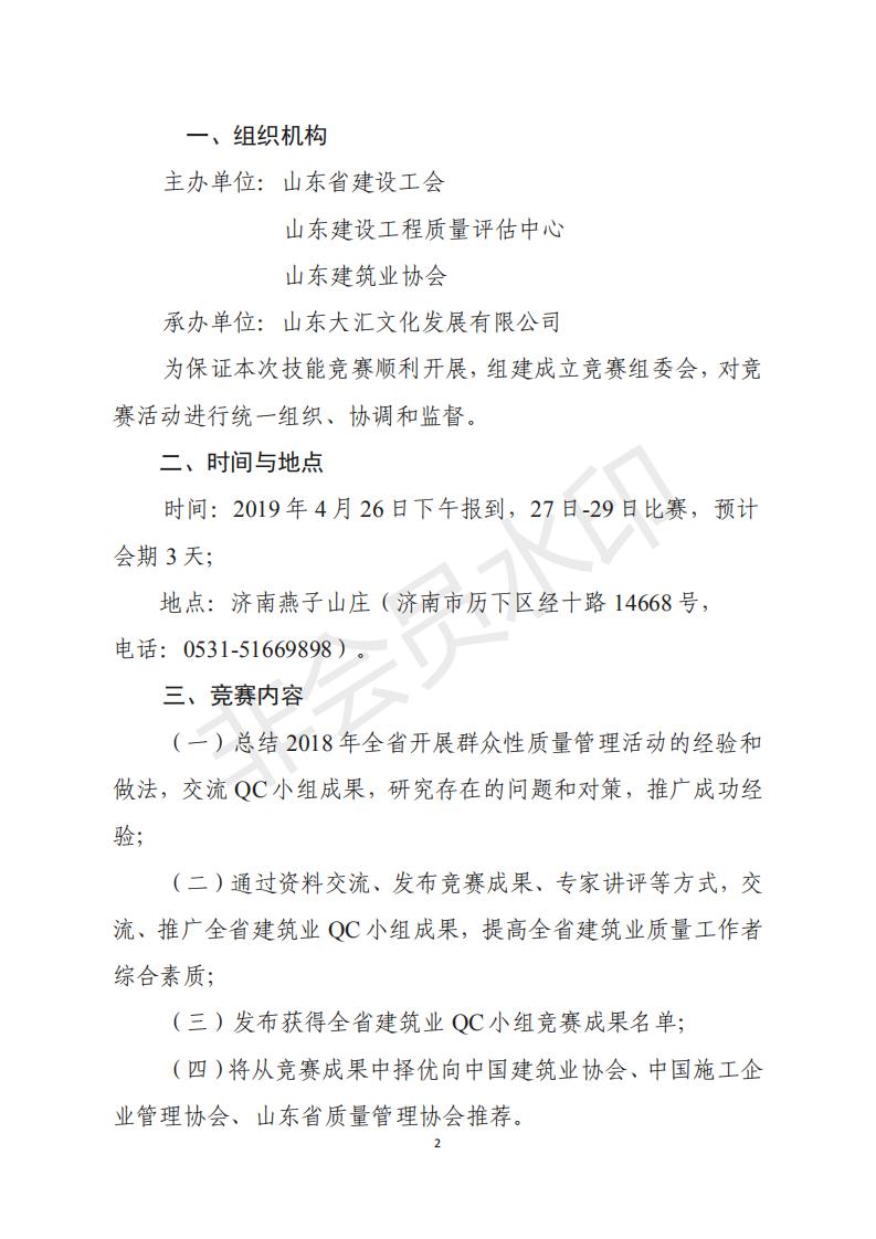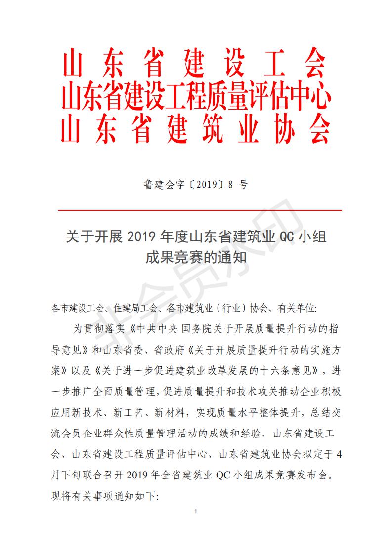 關于開展2019年度 山東省建筑業(yè)QC小組成果競賽的通知