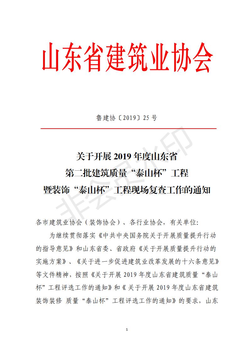 暨裝飾“泰山杯”工程現(xiàn)場復(fù)查工作的通知