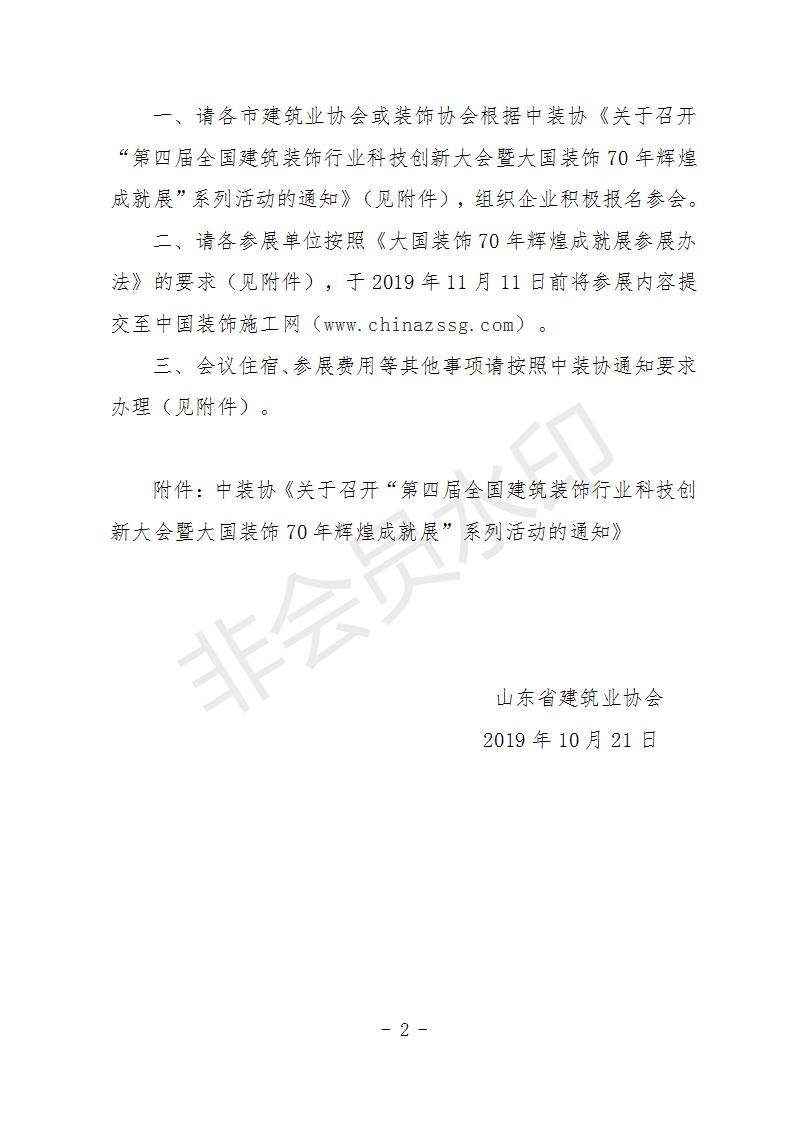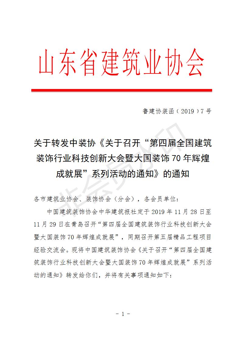 ![]() | 附件:中裝協(xié)《關于召開“第四屆全國建筑裝飾行業(yè)科技創(chuàng)新大會暨大國裝飾70年輝煌成就展”系列活動的通知》 |