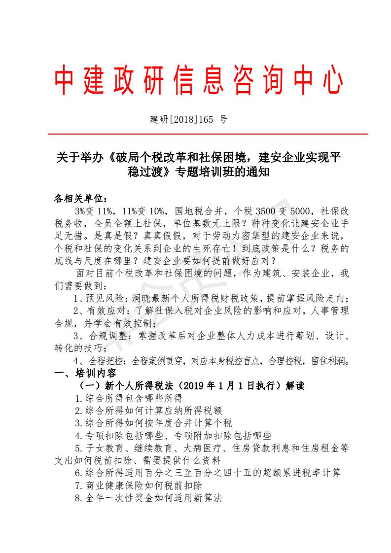 關(guān)于舉辦《破局個稅改革和社保困境,建安企業(yè)實現(xiàn)平穩(wěn)過渡》專題培訓班的通知