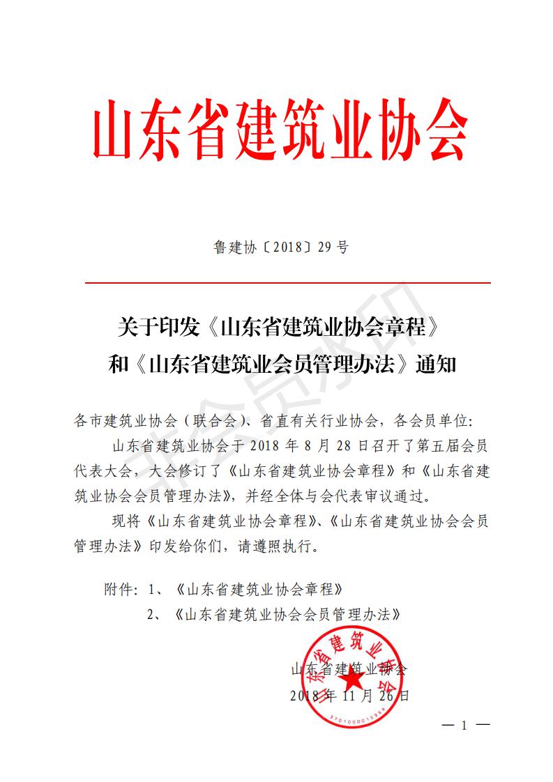 關(guān)于印發(fā)《山東省建筑業(yè)協(xié)會(huì)章程》 和《山東省建筑業(yè)會(huì)員管理辦法》通知