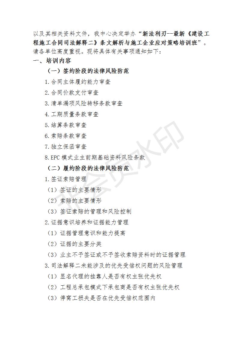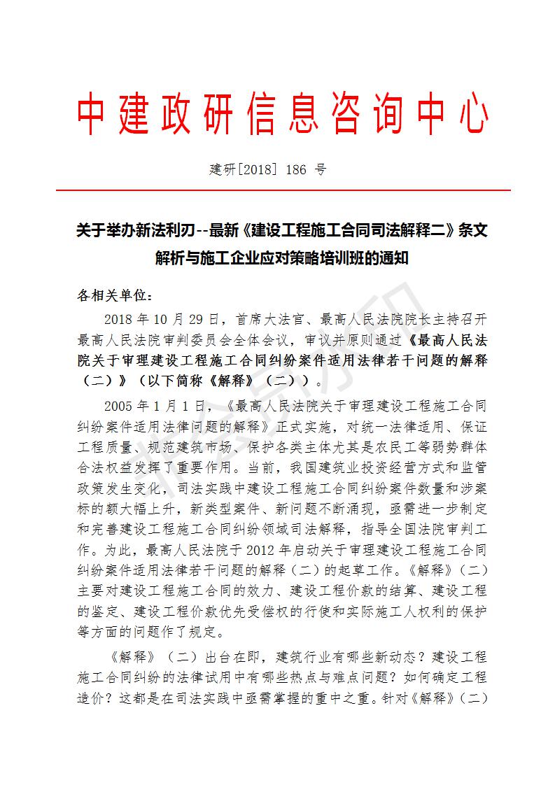 關(guān)于舉辦新法利刃--最新《建設(shè)工程施工合同司法解釋二》條文 解析與施工企業(yè)應(yīng)對(duì)策略培訓(xùn)班的通知